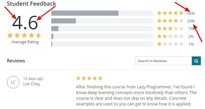 Currently it is the bestselling deep learning course at Udemy, the ratings are good at 4.6 and enrollments steady at 13000 plus.